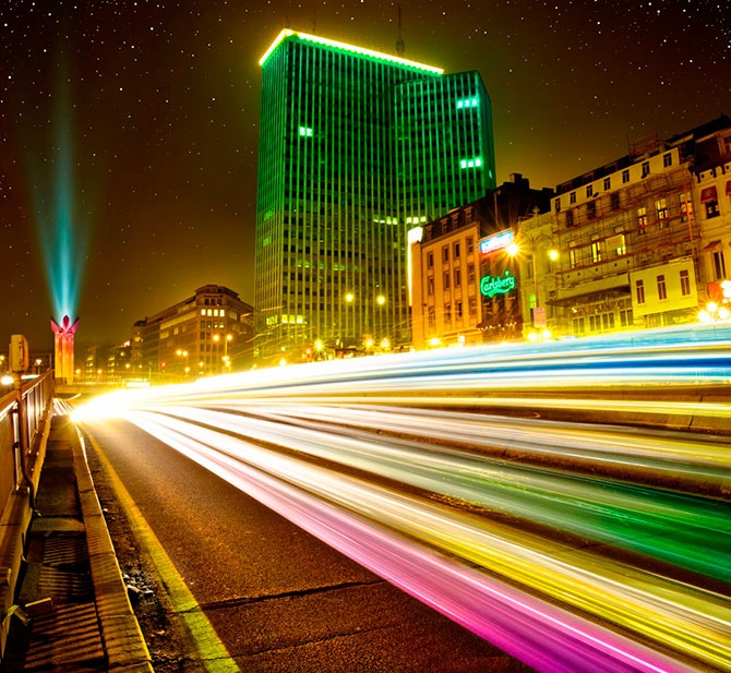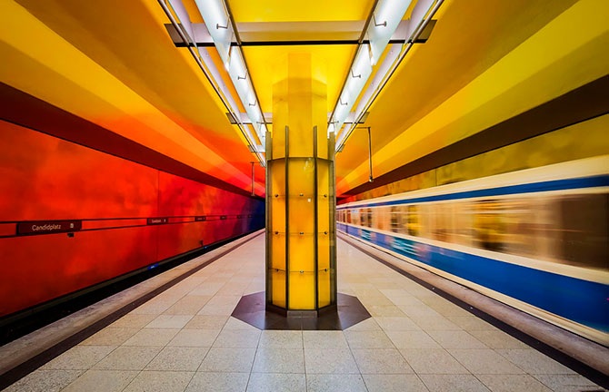 Стены, колонны и потолки станции выкрашены всеми цветами радуги.