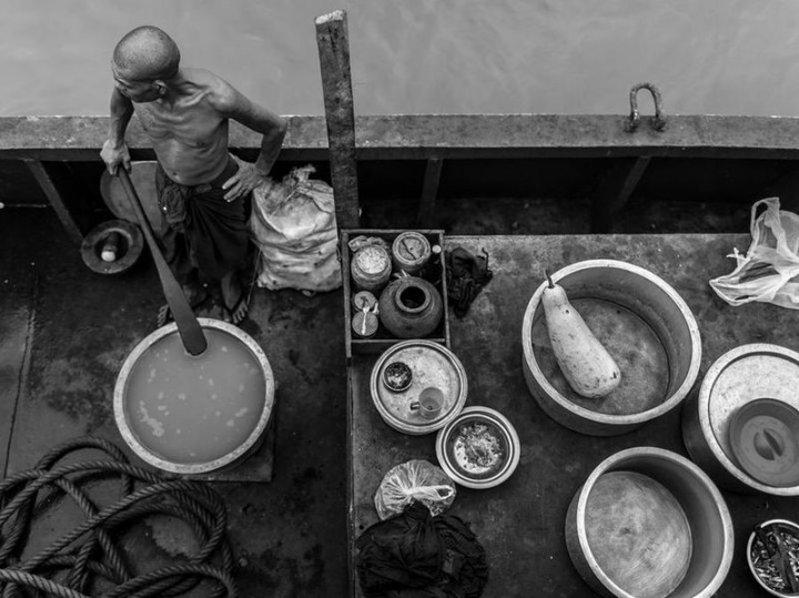 23. Кок на пароме, плывущим в маленькую деревушку Мраук Ю, древнюю столицу Бирмы. «Я обратила внимание, что мужчина всегда готовит одно и то же блюдо. Мне даже стало интересно, сколько же раз за всю свою жизнь он его готовил». Clementine Crey.