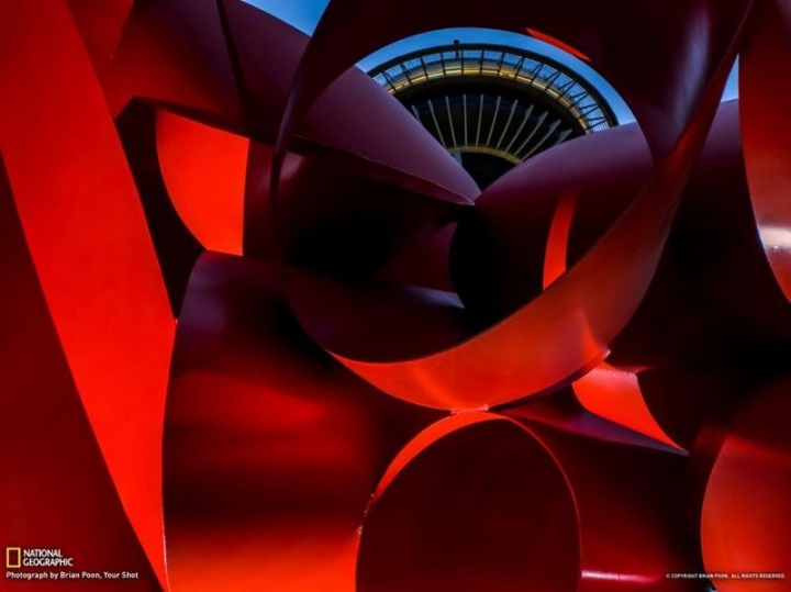 14. Необычный снимок от Brian Poon. Он сфотографировал башню Спейс Нидл в Сиэтле через скульптуру Олимпийская Илиада.