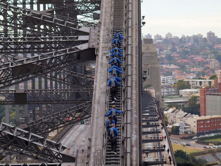 25. Мост Харбор-Бридж в Сиднее. Скалолазы хотят пройти его от края до края. На экстремалах специальные костюмы, которые по цвету сливаются с мостом. Сделано это для того, чтобы не отвлекать автолюбителей, проезжающих внизу. Vincent Ma.