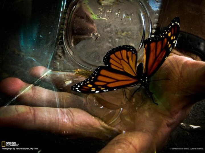 3. Фотограф Kenzie Reynen рассказал, что работая на ферме, нашёл куколку бабочки-монарха и принёс её к себе домой. Ровно через неделю кокон начал менять цвет и из него вылупилось маленькое грациозное насекомое. По словам мужчины, это было просто фантастическое зрелище.