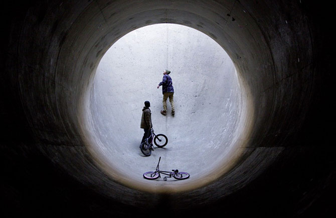 Финалист фотоконкурса Теодор Ван Орман сделал этот снимок во Фриско, штат Колорадо. Велосипедисты зачарованно смотрят на свет в конце тоннеля. “Они не знали, что я их фотографирую”.
