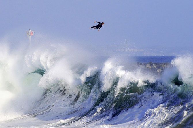Бенджамин Гинсберг вышел в финал фотоконкурса с фотографией сёрфера Бобби Оквиста в Ньюпорт-Бич, штат Калифорния.