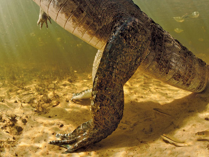 Это якарский кайман, Бразилия. Недавно на якарских кайманов активно охотились ради ценной кожи, но, получив «охранную грамоту», якарские кайманы Бразилии начали восстанавливать свою численность – и весьма преуспели в этом.