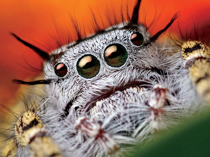 На самом деле этот паук-скакун такой маленький, что легко уместится на ногте. Подробнее смотрите в «Захватывающий макромир от Томаса Шаана».