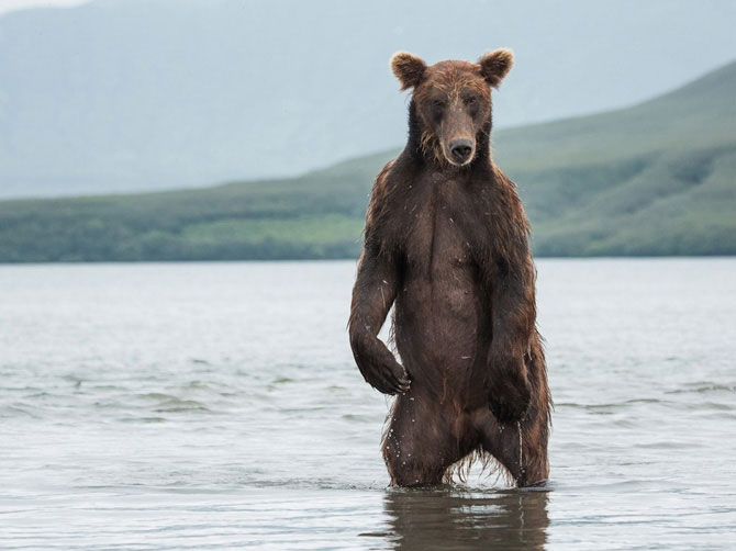 Курильское озеро, Южно-Камчатский федеральный заказник. Уникальность этого нетронутого уголка состоит в том, что при обилии пищи и запрете на охоту медведи здесь совсем не боятся человека, не проявляют агрессию, подпуская на достаточно близкое расстояние.