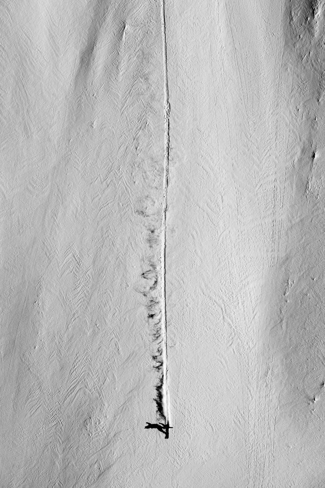 Последняя фотография со съемок фильма The Art of FLIGHT, на которой Трэвис Райс съезжает по снежному хребту. Вертолет, в котором сидел Скотт, завис на 30-метровой высоте над Трэвисом, чтобы фотограф мог снять его спуск.