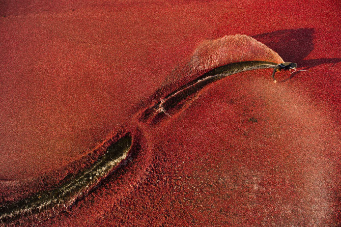 Каждый год, в конце осени, на севере штата Висконсин поспевает клюква. Пока она растет, поля остаются сухими, но во время сбора урожая их полностью затапливает. Ягоды всплывают на поверхность, образуя огромное красное море, по которому можно кататься на водных досках и лыжах.