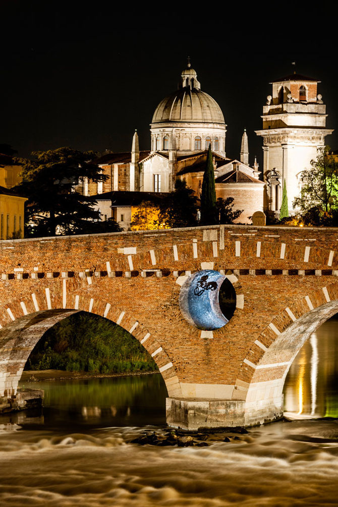 Стефан спустился по веревке в круглое отверстие в мосту Понте Пьетра, а потом по той же веревке ему спустили его BMX, на котором он выделвал всякие трюки на радость проходившим мимо туристам.