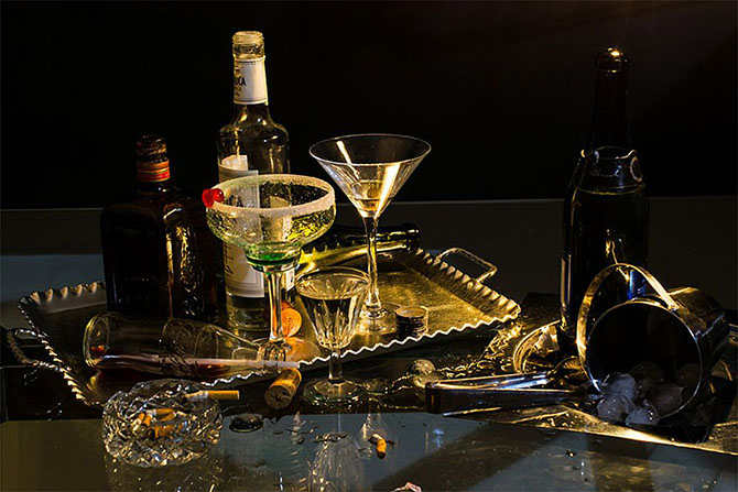 Возможно, британская супер-модель уже и отказалась от вредных привычек, однако бурную молодость она провела в компании алкоголя и сигарет. Фотограф не преминул украсить стол просыпанной мукой (возле опрокинутого ведерка со льдом), намекая на то, что для бодрости в такой диете нужен еще и кокаин. И не зря, ведь в 2005-м году разразился настоящий скандал, когда достоянием публики стал ролик, в котором модель нюхала порошок в компании со своим другом Питом Догерти.