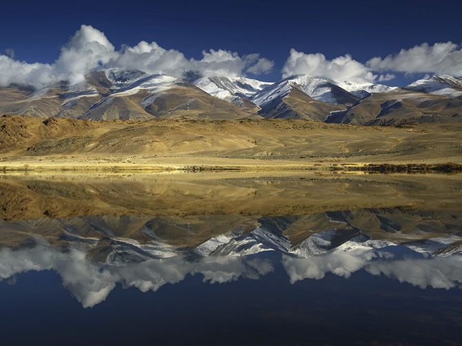 Красногорское озеро, Алтай. «Красногорское, или Ортолыкское, озеро редко кто замечает, несмотря на доступность. Люди часто спрашивают меня о местонахождении этого озера, удивляясь тому, что это то самое озеро, мимо которого они так часто проезжают. А между тем в безветрие здесь можно увидеть фантастические отражения — великолепные зеркальные миры Горного Алтая».