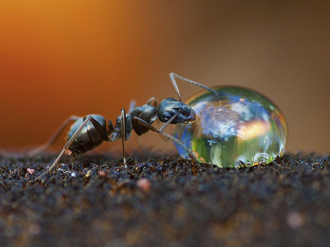 Муравьиное лакомство. «Мир насекомых — удивительный, даже сказочный, — рассказывает Ирина Козорог. — Снимать все это я люблю и дома, и на природе — не могу сказать, что мне нравится больше». На фото: муравей пьет каплю сладкого сиропа на камыше.