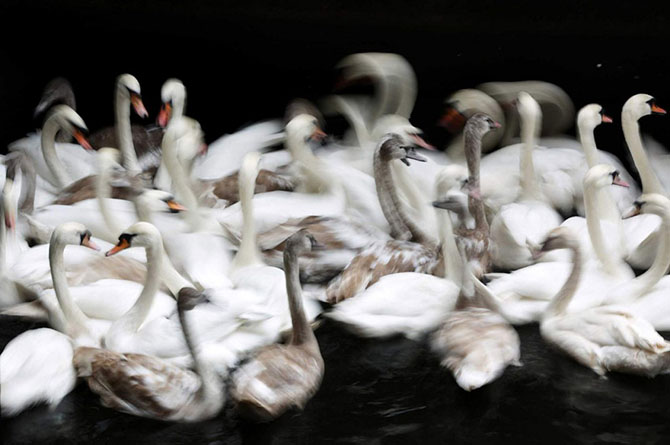 Лебеди на озере Альстер в Гамбурге, Германия, 18 ноября 2014 года.