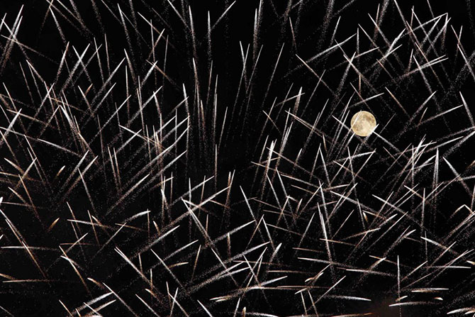 Фейерверки в небе над городом Моста на Мальте, 10 августа 2014 года.