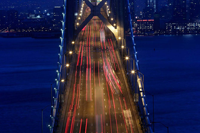 Мост между Сан-Франциско и Оклендом в вечерний час-пик, 3 сентября 2014 года.