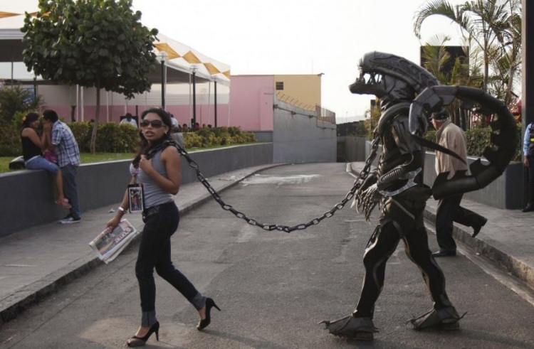 Женщина ведёт на цепи “чужого” во время празднования дня основания перуанской столицы Лима, 18 января 2013