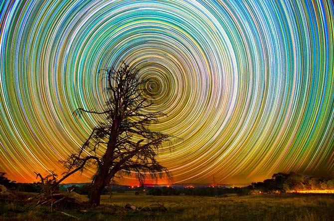 Снимки австралийского фотографа Линкольна Харрисона, на которых запечатлены звездные следы в ночном небе Австралии. Для получения этих фотографий, снятых с большой выдержкой, было затрачено 15 часов!