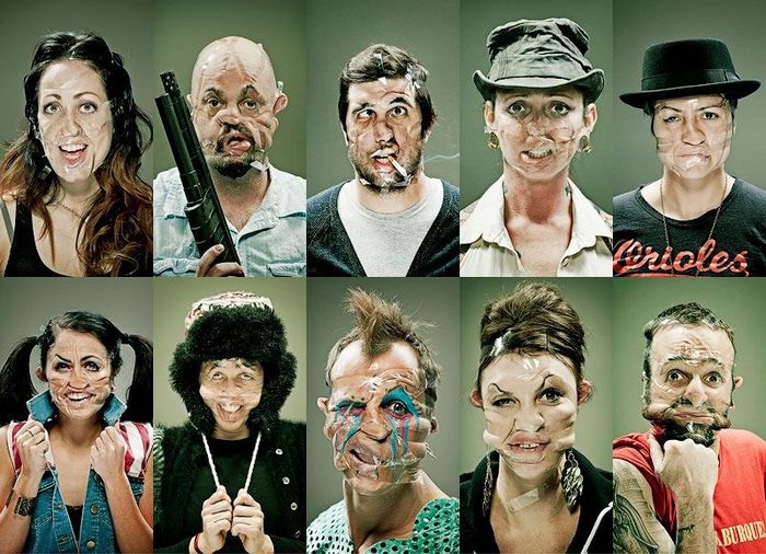 Он заклеивает лица людей скотчем, это придает деформацию и невообразимую карикатуру. «Чего я хочу добиться своей работой, так это создать активатор, чтобы помочь людям увидеть мир с другой стороны», – говорит он.