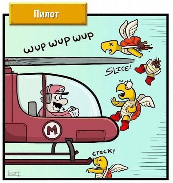 Марио — любимая игрушка нашей юности. Но сантехник не самая лучшая профессия для борьбы со сказочными монстрами. Давайте поменяем сантехнику профессию и посмотрим, как бы развивался сюжет, будь Марио плотником, пилотом, садовником, полицейским или ниндзей.