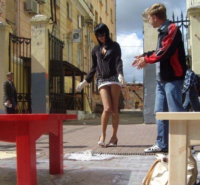 Симпатичные девушки, которые не торопясь прогуливаются по улицам города в мини юбках, а находчивые фотографы подлавливают нужный момент и легкий ветерок для отличного снимка.