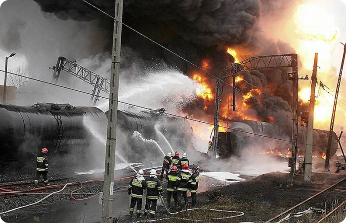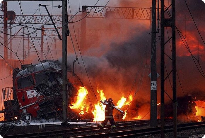 Инцидент произошел в половине шестого утра 8 ноября. Товарный поезд, проходящий в сторону Белостока, на перегоне зацепил последние вагоны товарного поезда, следующего в сторону Варшавы. В результате столкновения загорелась нефтяная цистерна, затем последовал взрыв, и пламя переместилось на остальные вагоны. Пожар на железнодорожных путях тушило 30 пожарных расчётов. В результате инцидента один человек пострадал и доставлен в больницу. Из двух соседних зданий эвакуированы люди. Огонь уничтожил около 20 цистерн. Нефтепродукты попали в грунт. А при горении выделялся едкий дым.