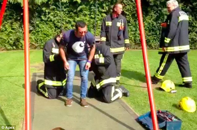 Но когда настало время слезать, отец понял, что его задница застряла.