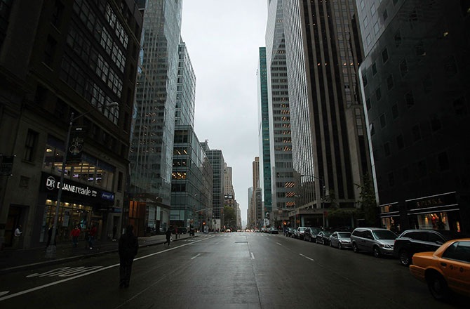 Улицы Нью-Йорка опустели. Пустынная Таймс-Сквер в Нью-Йорке, 29 октября 2012.