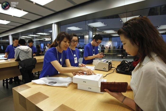 6. Работники магазина аплодируют клиенту, который купил новый iPad в магазине Apple в Гонконге, Китай. (TYRONE SIU/REUTERS)