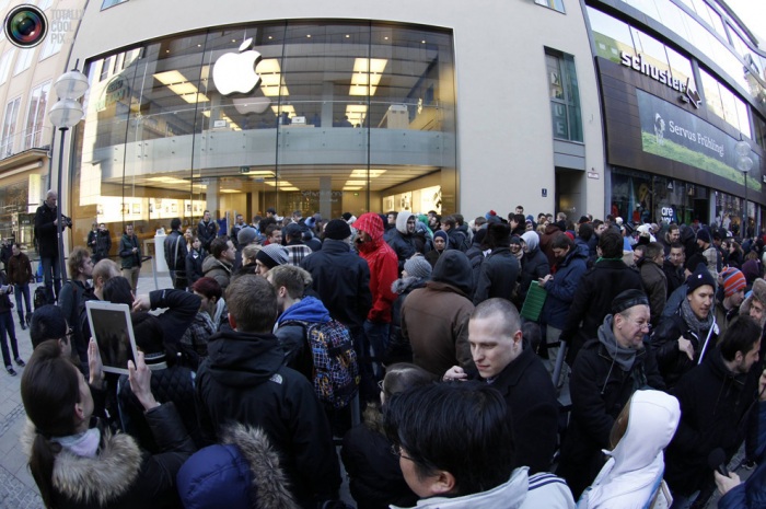 20. Люди стоят на улице возле магазина Apple, ожидая, когда начнутся продажи нового iPad, в Мюнхене, Германия. (MICHAELA REHLE/REUTERS)