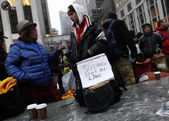 9. Объявление гласит — «Продаю свое место в очереди». (ANDREW KELLY/REUTERS)
