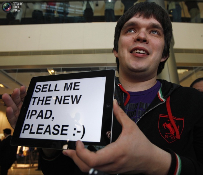 30. Только-только новый iPad стартовал в продаже, как начали появляться первые недовольные пользователи. Большинство жалоб касаются перегрева нового устройства. На фото: «Продаю свое место в очереди». Снимок сделан возле одного из магазинов Apple-Store в Нью-Йорке. (TOBY MELVILLE/REUTERS)