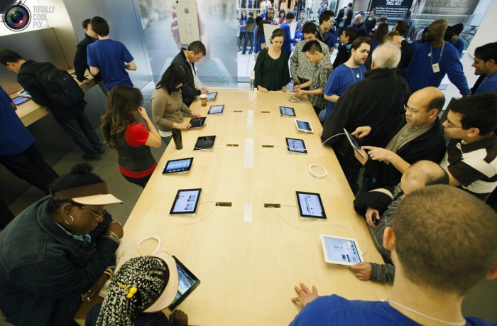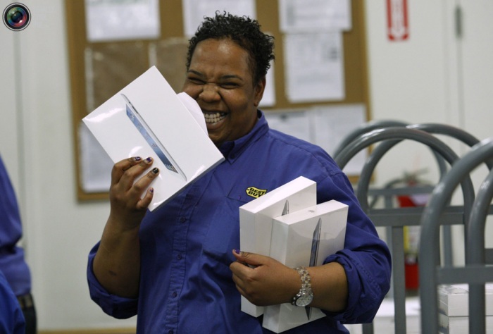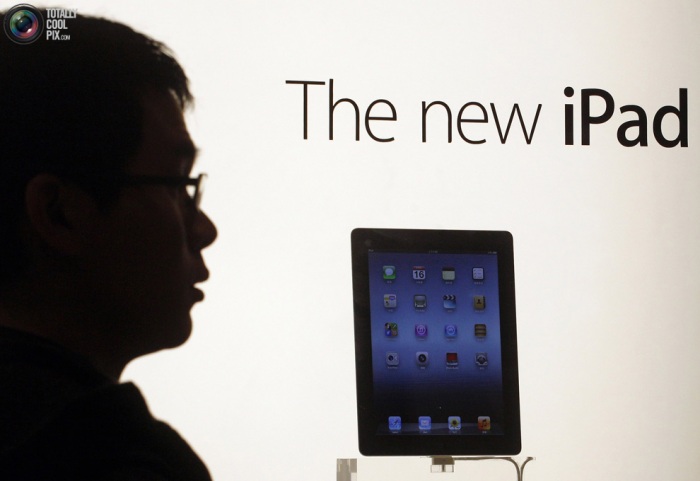 1. 16 марта в США и еще девяти странах стартовали продажи третьего поколения iPad. На фото: Работница магазина на Манхэттене несет покупателям новые iPad. (EDUARDO MUNOZ/REUTERS)