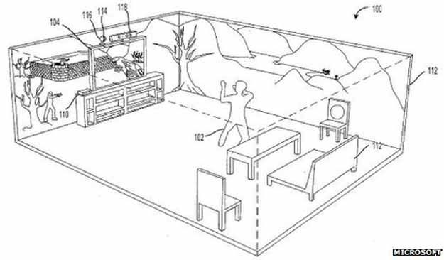 Согласно поданным на патент документам, Microsoft хочет вынести игровые впечатления за пределы одиночного экрана и сделать экраном все игровое помещение, включая мебель. Система позволяет корректировать изгибы предметов в комнате для имитации ровных и сложных поверхностей.