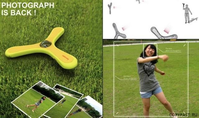 Камера-бумеранг Camerang. Ее действительно можно бросать и она на самом деле вернется обратно! Кому это надо? Поклонникам «высотных» съемок: камеру можно запустить куда подальше и куда повыше, пусть себе фоткает. Причем в Camerang есть режим фиксации на объекте – снимки все равно получаются четкие, как сильно бы ее не запустили. Корпус в этой камере, разумеется, противоударный.
