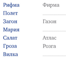 Изучите два списка слов. В правой колонке находятся анаграммы к словам из левой. Свяжите каждое слово из левой колонки с соответствующим ему из правой и запомните их.