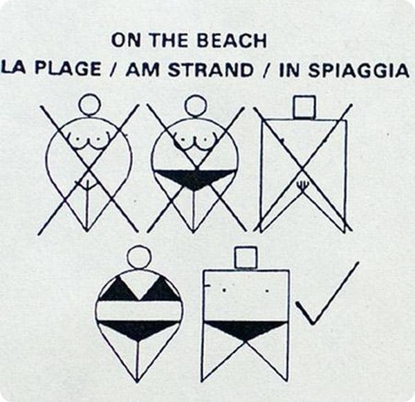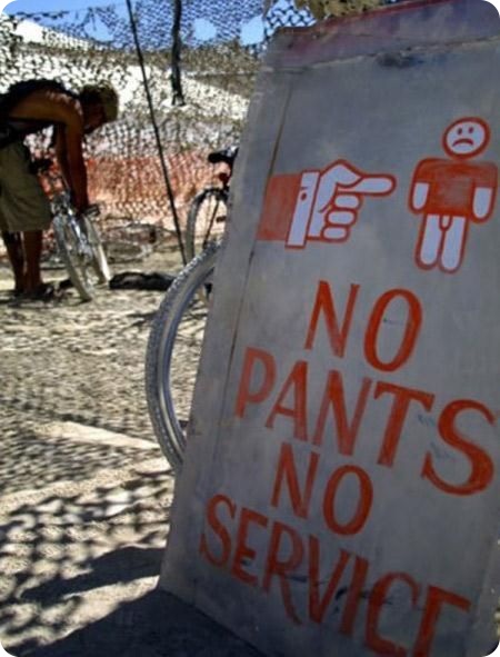 Следующий пляжный знак предупреждает отдыхающих о том, чтобы они не забывали свои штаны.