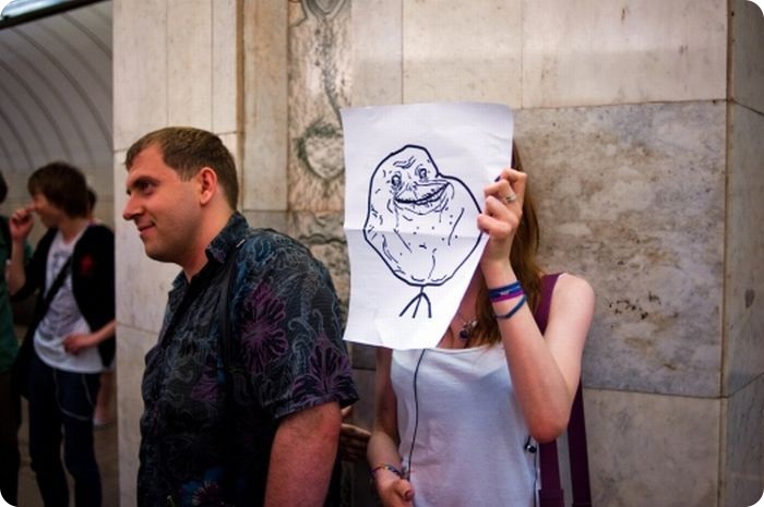 «Наверное чуть-чуть опаздывает, девушки всегда так..» думали они, то и дело поглядывая на часы. Но нет, никто не опоздал, «тролли» появились вовремя. Собравшись в конце станции, по-началу, они старались не привлекать внимание, хоть их и собралось около 100 человек.
