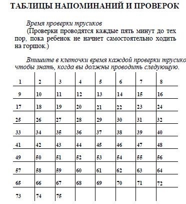 Таблица для проверки сухих трусиков, которую нужно будет кропотливо вести. 75 проверок. Чтобы маме было не скучно