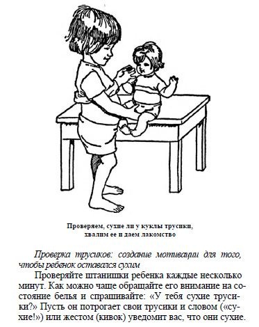 За сухие трусики — кусочек сахара. Чем чаще они сухие — тем больше сахара. Важно, чтобы к концу обучения, у ребенка не выпали зубы.Кстати, вам придется распечатать таблицу сухих трусиков и повесить ее на холодильник выбросив с него все магнитики