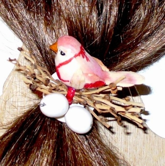 26. Заколка из искусственной птички. Таким образом, ваша прическа как бы говорит сама за себя, что она – гнездо.