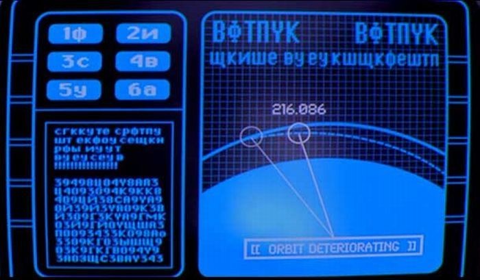 В этом фильме герой путешествует к Юпитеру на советском космическом корабле. Внутри все испещрено русскими надписями – вот только русского консультанта позвать не удосужились.