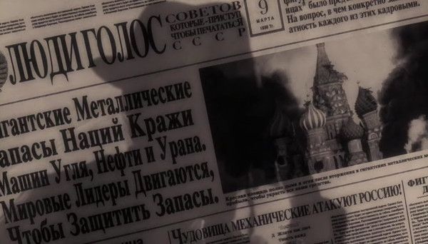 Все бы ничего, но в газетных заголовках слова не переносят на другую строчку, причем не только в России, но и во всем мире. Хотя в целом, стоит признать, в фильме бережно отнеслись к великому и могучему – явно брали консультанта из России.