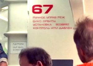 Очень информативная надпись на стене гласит буквально следующее: «РУЧНОЕ УПРАВ РЕЖ ФИКС ОРБИТЫ УСТАНОВКА ВОЗВРАТ КОНТРОЛЬ АТМ ДАВЛЕН». Коротко и ясно.