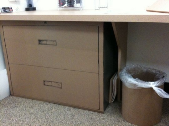 Все предметы, которые были у Leif до ухода в отпуск заменили на картонные копии. Вот каким был офис…… А вот что стало с ним через месяц