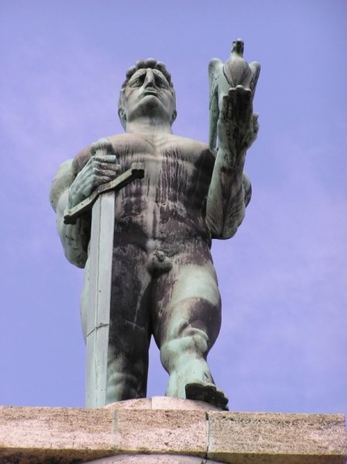 10. Памятник Победителю – это бронзовый подтянутый юноша, которого по соображениям морали убрали куда подальше и куда повыше, а именно на смотровую площадку крепости в Калемегдане. Белград, Сербия