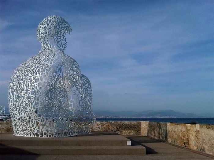 2. 8-метровая скульптура «Странник» создана из нескольких сотен металлических букв. Антиб, Лазурный берег, Франция