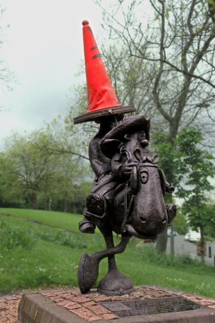 26. Мультяшный герой Лоби Доссер нередко «пародирует» герцога Веллингтонского, так же получая дорожный конус в качестве головного убора. Глазго, Великобритания