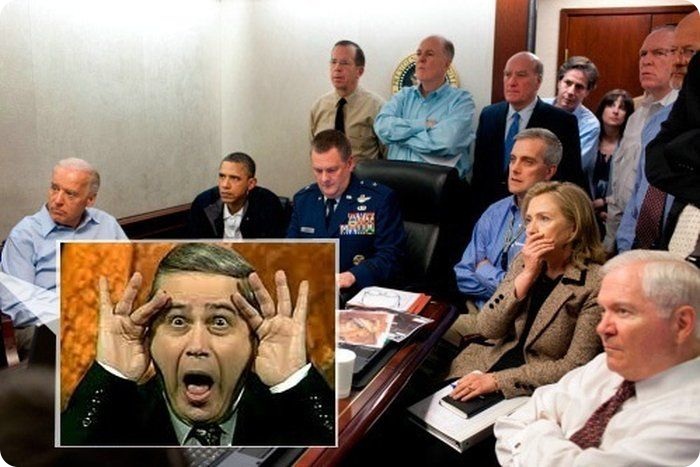 Как только появилась фотография с Обамой, где он сидит в кабинете и наблюдает за ликвидацией террориста №1 в США, сразу же начали появляться фотожабы по теме.