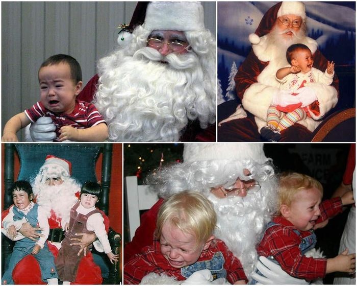 Многолетняя традиция фотографировать детей на руках у Санта Клаусов в торговых центрах и прочих подобных заведениях принесла огромный урожай забавных снимков с рыдающими от ужаса и недоумевающими малышами.