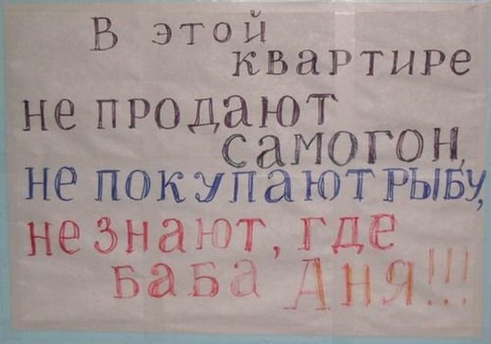 Жестокие, смешные и нелепые объявления, которые предназначаются соседям. Берите на заметку, есть достойные.
